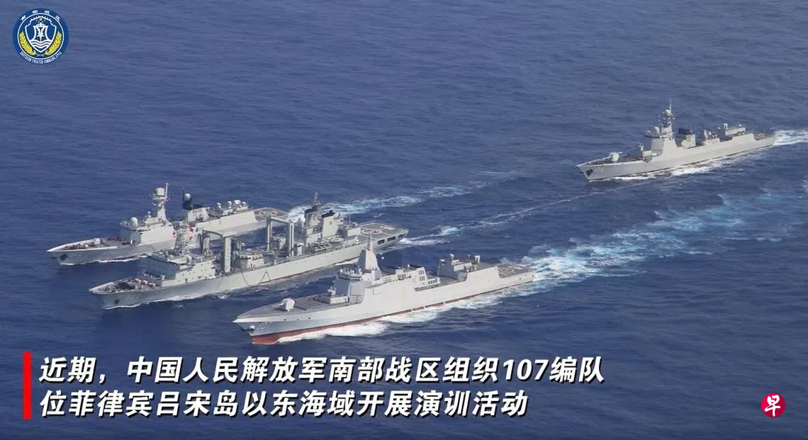 中国人民解放军南部战区星期五(4月24日)在微信公众号“南部战区”上通报,南部战区近期组织107编队位菲律宾吕宋岛以东海域开展演训活动,重点进行实弹射击、海空协同、快速机动、航行补给等演练,检验一体化联合作战能力。