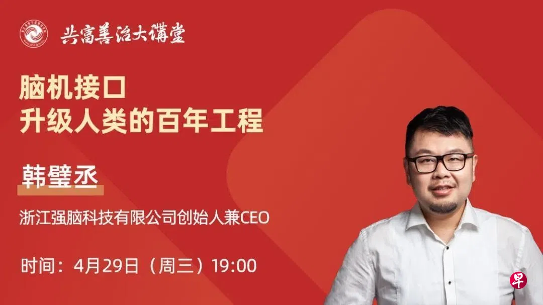 (杭州综合讯)中国“杭州六小龙”之一的强脑科技创始人韩璧丞,将在星期三(4月29日)为浙江全省干部上课,开讲脑机接口。