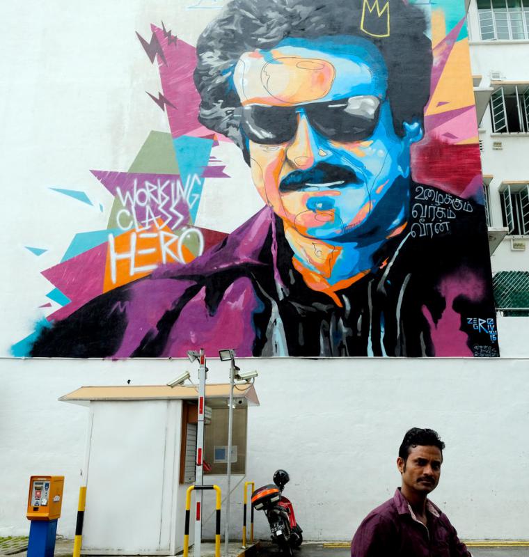 在兴都路上可看到另一幅巨型肖像画,名为《打工英雄》(Working Class Hero),作品出自马来视觉艺术家Mohammed Zulkarnaen Bin Othman(Zero)之笔,画中人是印度电影界传奇巨星拉吉尼坎特(Rajinikanth)。Zero近年来活跃于艺坛,他也是2013年青年艺术家奖得主。