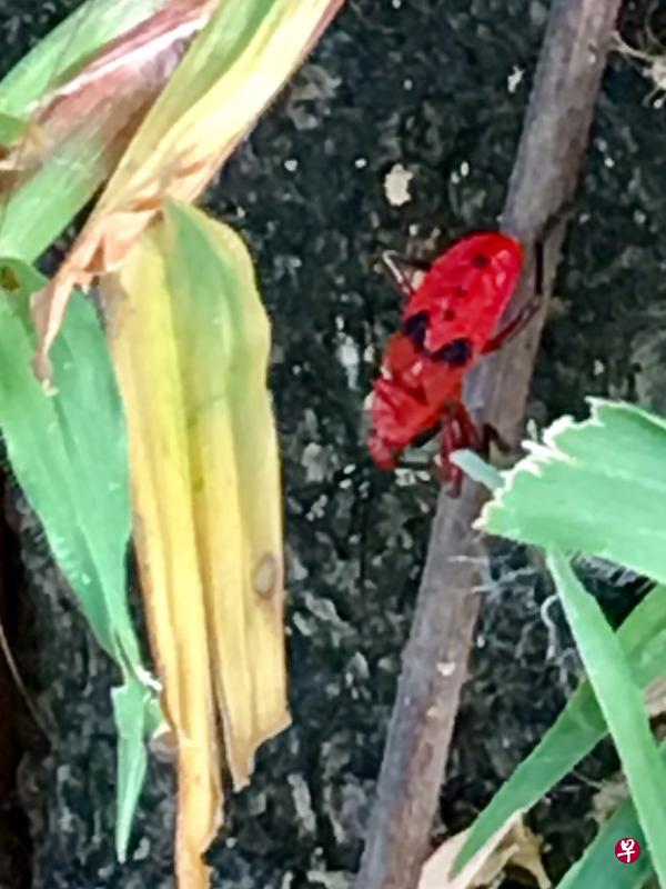 晨运完毕后,走在杂草丛生,枯枝败叶繁密的小路上。不经意瞄了路旁一棵大树,眼球被一只红艳艳,披着人面的小甲虫慑住。