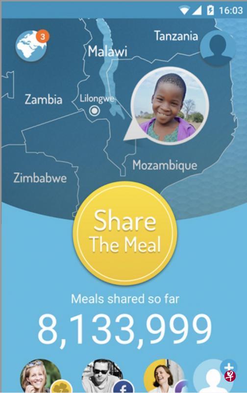 联合国世界粮食计划署推出的app,旨在借助群众力量,缓解全球儿童饥饿问题。