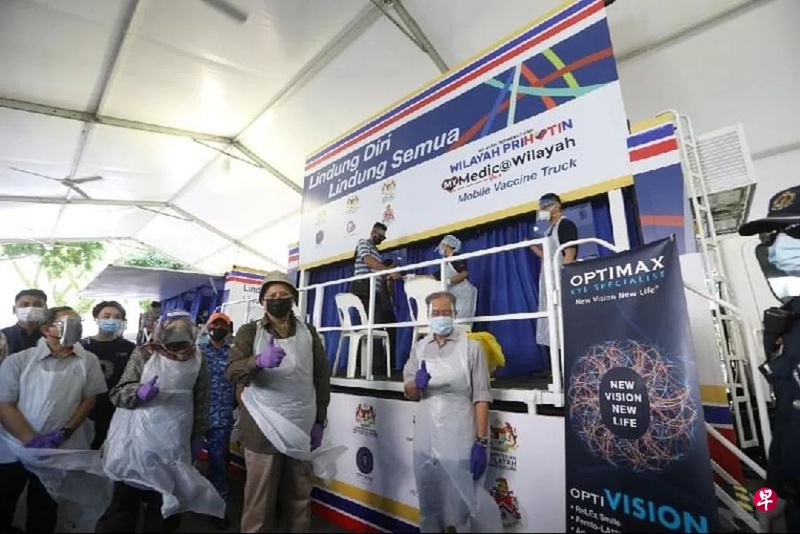 《星洲日报》报道,两辆接种疫苗流动卡车率先在吉隆坡甘榜亲善人民组屋启动,预料约1000个居民将接种第一剂中国科兴疫苗。