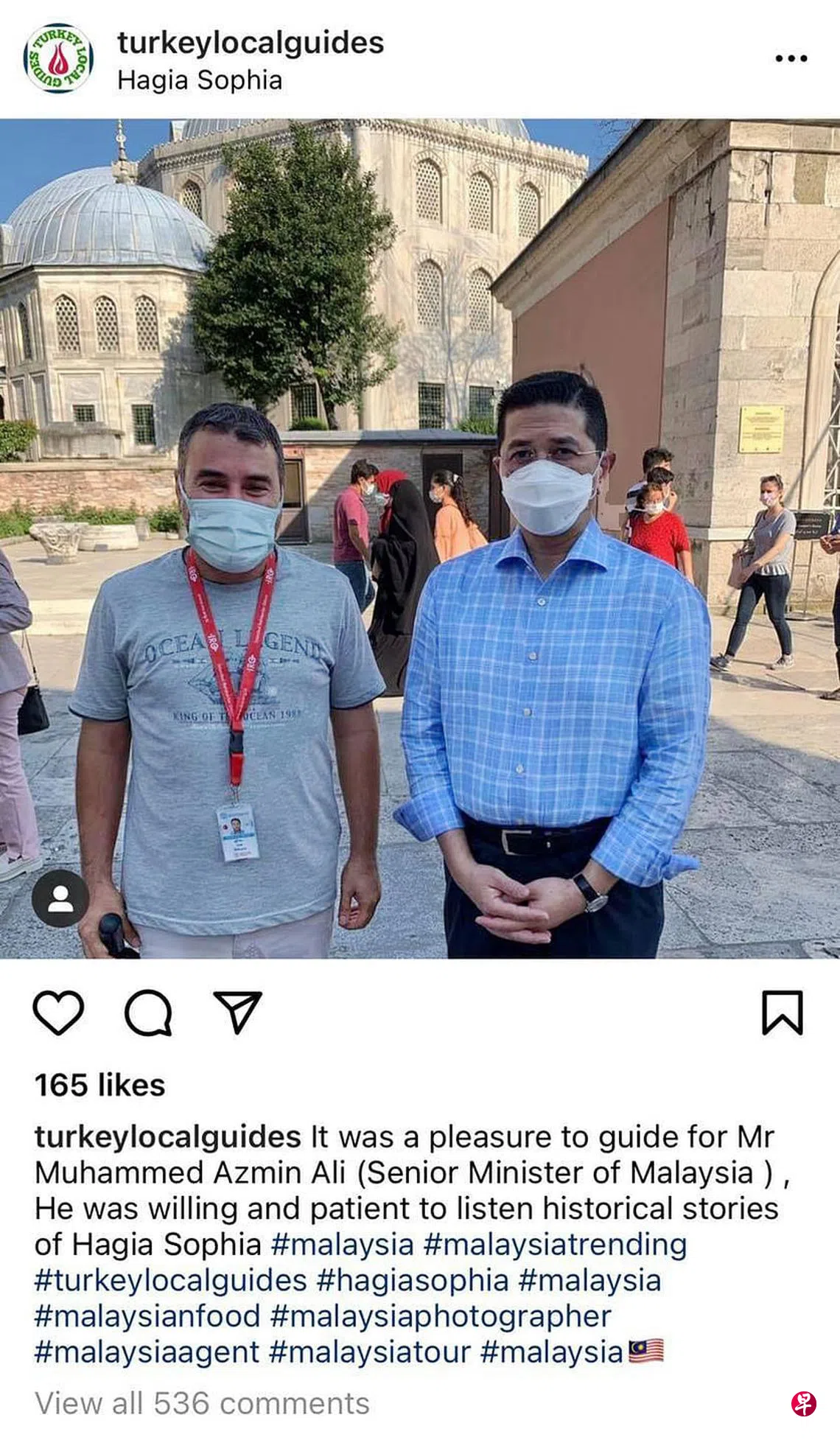 《星洲日报》报道,巫青团团长阿斯拉夫表示,“当人民与逐日增加的确诊病例及死亡病例搏斗,并被迫在冠病评估中心大排长龙,贸工部长(阿兹敏)趁机到土耳其伊斯坦布尔的圣索菲亚大教堂旅游是否妥当?想到人民如今面临冠病疫情威胁的情况,难道一丝忧虑和担心都没有吗?”