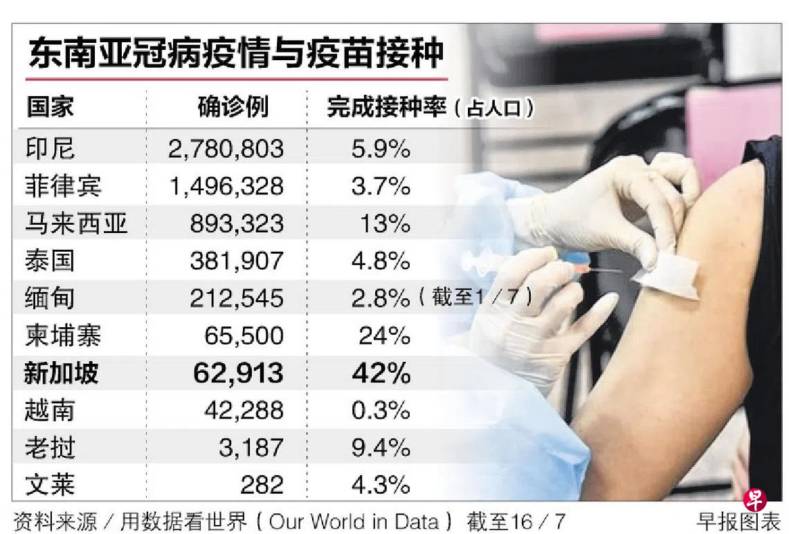 (曼谷/马尼拉综合电)随着德尔塔变种冠病病毒株迅速传播,加上疫苗接种进展缓慢,东南亚如今已成为全球冠病的“重灾区”之一。
