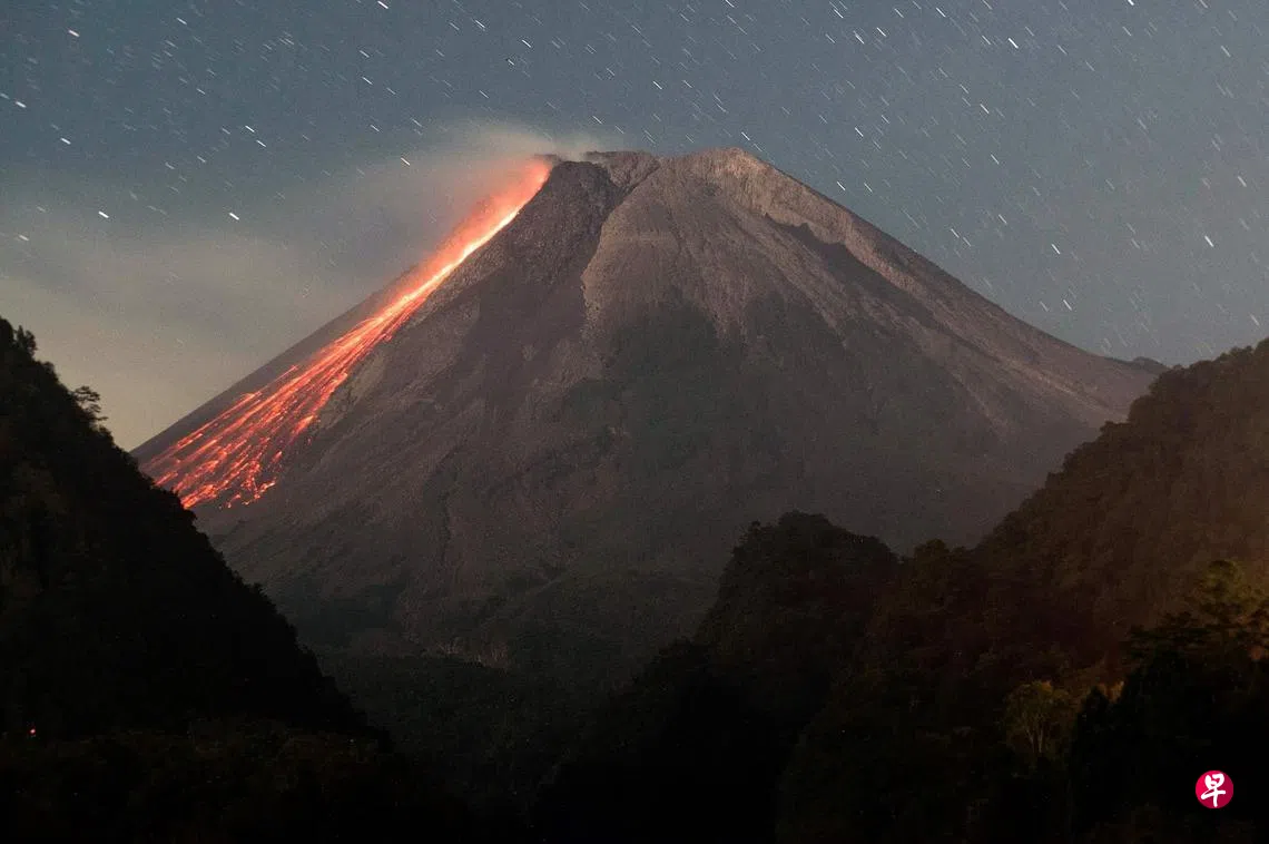 印度尼西亚人口密集的中爪哇日惹市以北28公里的默拉皮火山(Mount Merapi)昨日又喷发,火红岩浆滚滚而下,惊动周边村庄的居民。默拉皮火山自2018年5月以来就开始喷发。上一次大爆发是在2010年底,那是自1930年以来最猛烈的一次,摧毁了多个村庄,导致300多人死亡及28万人撤离。(法新社)