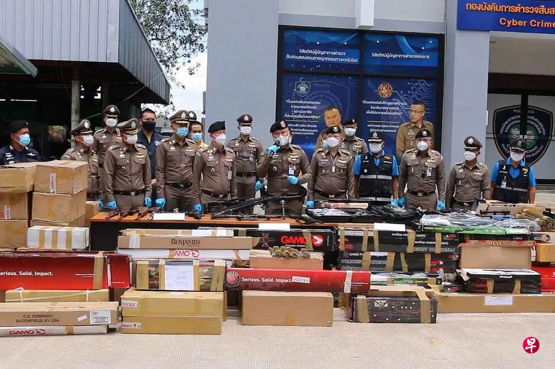 (曼谷讯)泰国警方侦破网上贩卖军火案,逮捕三人,起获约3500支枪械和将近100万枚子弹,估计值约5000万泰铢(约205万新元)。