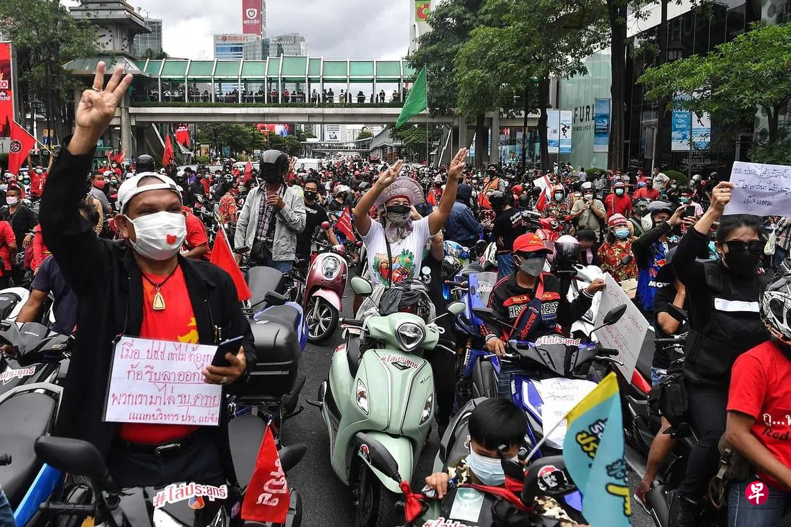 泰国一年前掀起民运潮,以年轻人为主的示威者要求巴育下台,以及修改有利于军方势力继续掌权的宪法,同时还打破泰国数十年来的社会禁忌,要求改革王室。