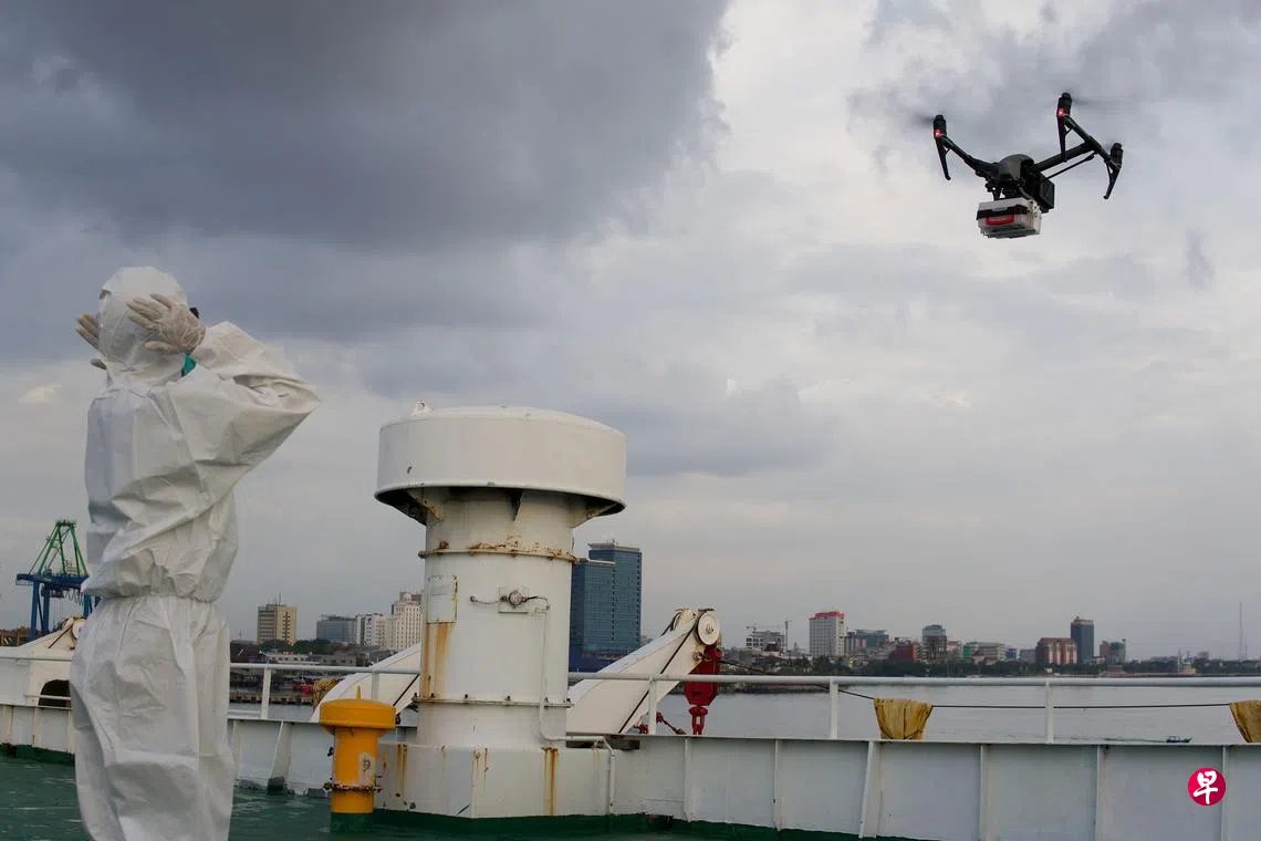 (望加锡路透电)印度尼西亚冠病疫情严峻,医院爆满,许多病患被拒于门外,只能自我居家隔离。看到这些在家中隔离的病患无法得到治疗和帮助,一群无人机爱好者便利用他们的空中技能,为这些病患提供非接触式药物和食品配送服务。