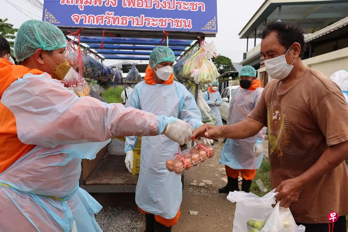 冠病疫情侵袭一年多,遭受最大冲击的无疑是弱势群体。泰国一群佛僧和志愿者为帮助贫穷人家渡过这艰难时段,近几个月来在曼谷郊区经营“流动杂货店”,让有需要者免费领取粮食和必需品。