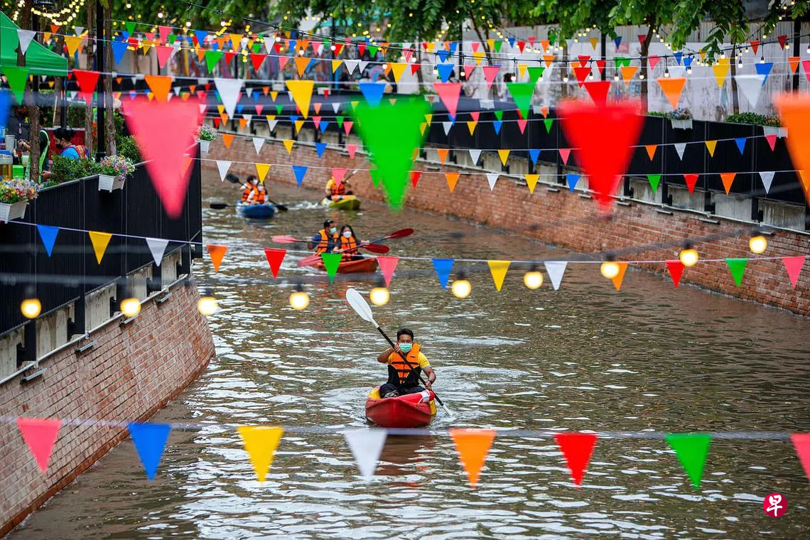 随着泰国的冠病疫情趋缓,首都曼谷10月15日起,重开因冠病疫情关闭的翁昂运河步行街,允许民众在遵守防疫措施下游览并参加划船活动。曼谷市政府从2014年开始清理和整治脏乱的翁昂运河地区。如今,该运河周围成为集居住、经商、文化集市、观光于一体的滨河社区。泰国的新确诊病例昨天比前一天稍微上升162起,达1万零648起,累计逾177万起;死例则有82起,累计1万8205起。(新华社)