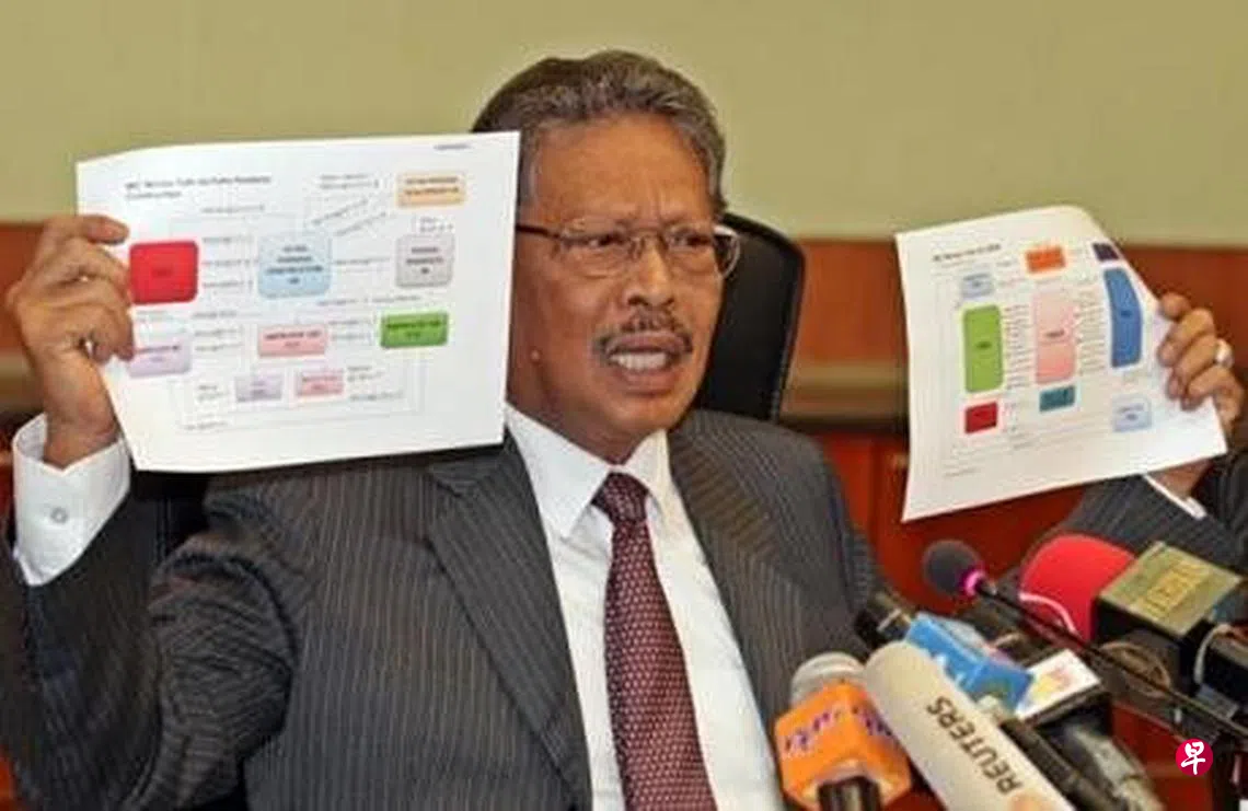 阿班迪当时说,纳吉并未涉及任何刑事犯罪,因此他将所有调查报告退回反贪会并指示反贪会结案。阿班迪也当场手持两份图表让媒体拍照及录像。
