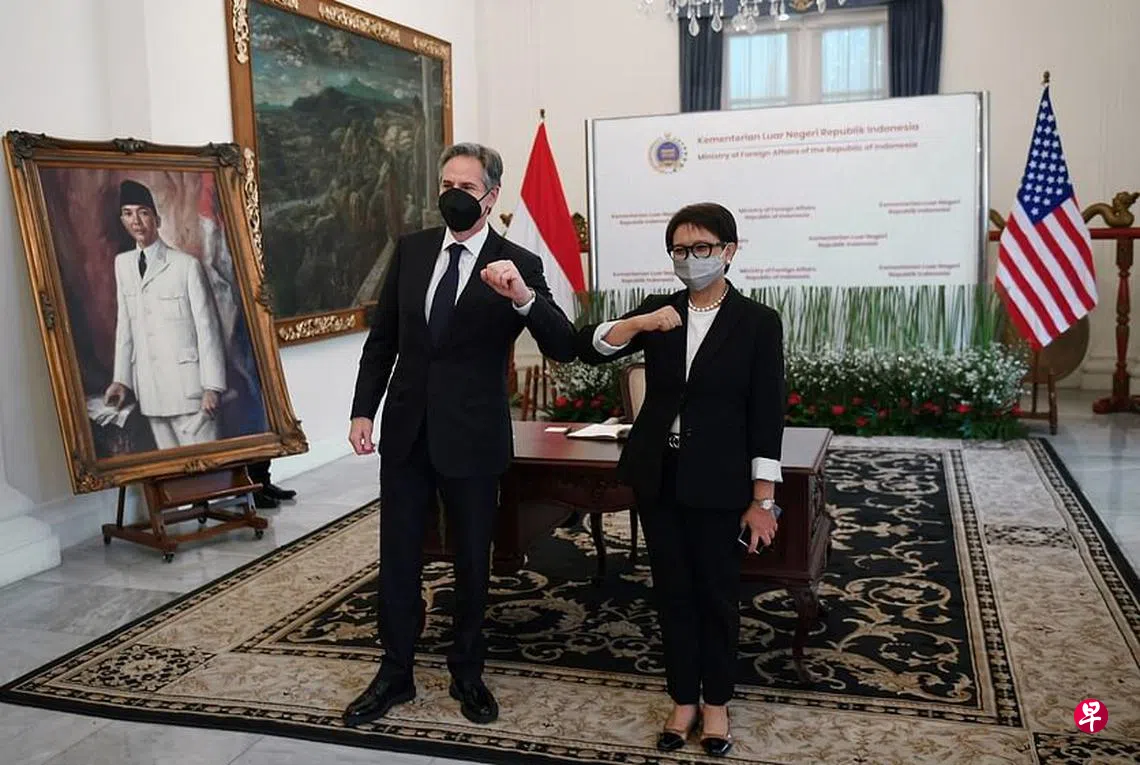这是布林肯就任国务卿以来首次访问东南亚,印尼是他此行的第一站,过后将续程马来西亚和泰国。他周一抵达雅加达后已同印尼总统佐科会谈。