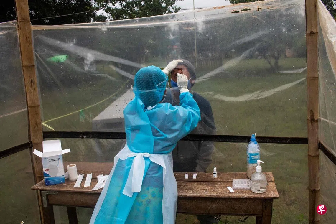 记者随艾奈与她的同僚来到一个村子。这支医疗小队以几根竹子和一块大塑料布围出一个简单的隔离间,在塑料布中央划出一个小口。她们就在隔间内通过这个小开口,为站在隔间外的人进行冠病检测。对于检测呈阳性的人,医护员会给他们退烧药或维生素,这也是医疗队仅有的药物。