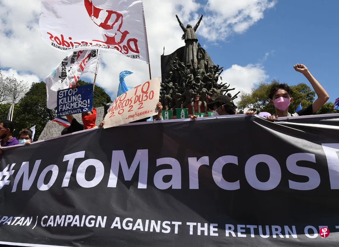 (马尼拉法新电)菲律宾前独裁者马可斯倒台36周年之际,上千名示威者走上首都马尼拉街头,抗议马可斯独子小马可斯竞选总统。教会领袖也在同一天呼吁信徒阻止小马可斯当选,以防止重现马可斯暴政时代。