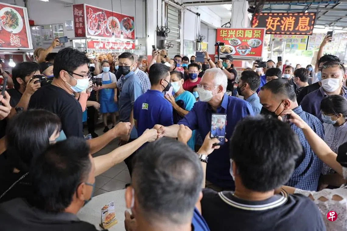 昨天是柔佛州选举竞选期的第二天。被视为国阵这次选举领军人物的马来西亚前首相纳吉昨天前往新山柏伶州选区一家咖啡店,为国阵马华候选人陈贤绮造势。纳吉一到场,现场民众立即群起热烈欢迎,并高呼纳吉的社交媒体昵称“Bossku”(我的老板),许多人还争相与纳吉碰拳致意和拍照。纳吉深知国阵2018年全国大选惨败下台,同时失去联邦政权及柔佛等多州政权,是由于当时超过九成华族选民支持希盟,因此国阵此次必须争取华族选民回流才能增加胜算。纳吉连日来已访问柔佛古庙与宽柔中学至达城分校等新山华社非常关心的文教场所。纳吉的这些访问行程在社交媒体引起热烈议论。反对党指纳吉所到之处大受欢迎,却不一定能争取到华族选民支持。但也有人认为,纳吉不必争取所有华族选民支持,因为在一些竞争非常激烈的选区,只要比上届大选还多的华族选民支持国阵,就可能影响选举结果。(纳吉面簿照片)