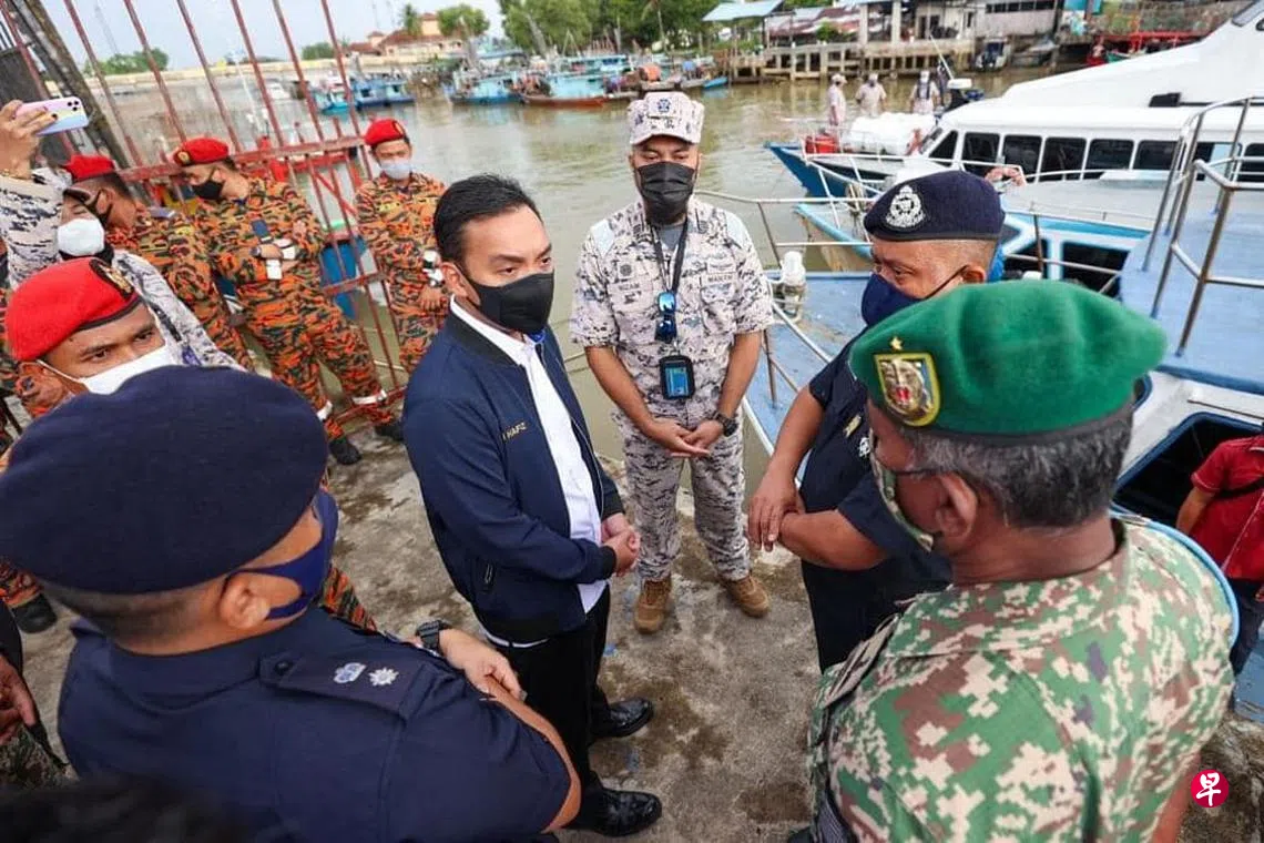 柔佛州务大臣翁哈菲兹(身穿蓝色外套面对镜头)昨天亲赴丰盛港的救援联络处了解搜救行动,并承诺全力搜寻失踪者。柔佛苏丹依布拉欣则谕令,在查明事故原因前,暂时禁止丰盛港海域的潜水活动。(取自翁哈菲兹面簿)