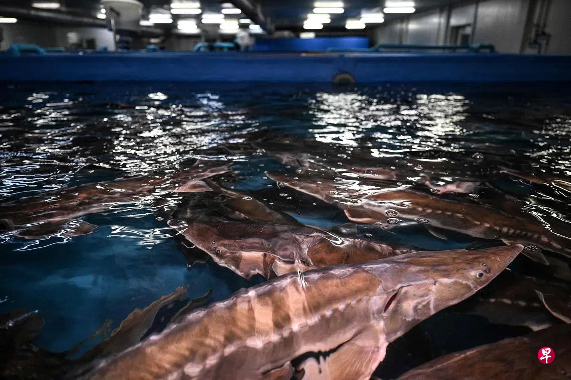 雌鲟鱼一次可产卵逾10万颗。取卵之前,尤丁养殖场会先将鲟鱼从水温21摄氏度的鱼缸转移到“冬季房间”,水温最初设在6摄氏度,随后调高至15摄氏度,跟着才按压鱼腹将卵挤出。