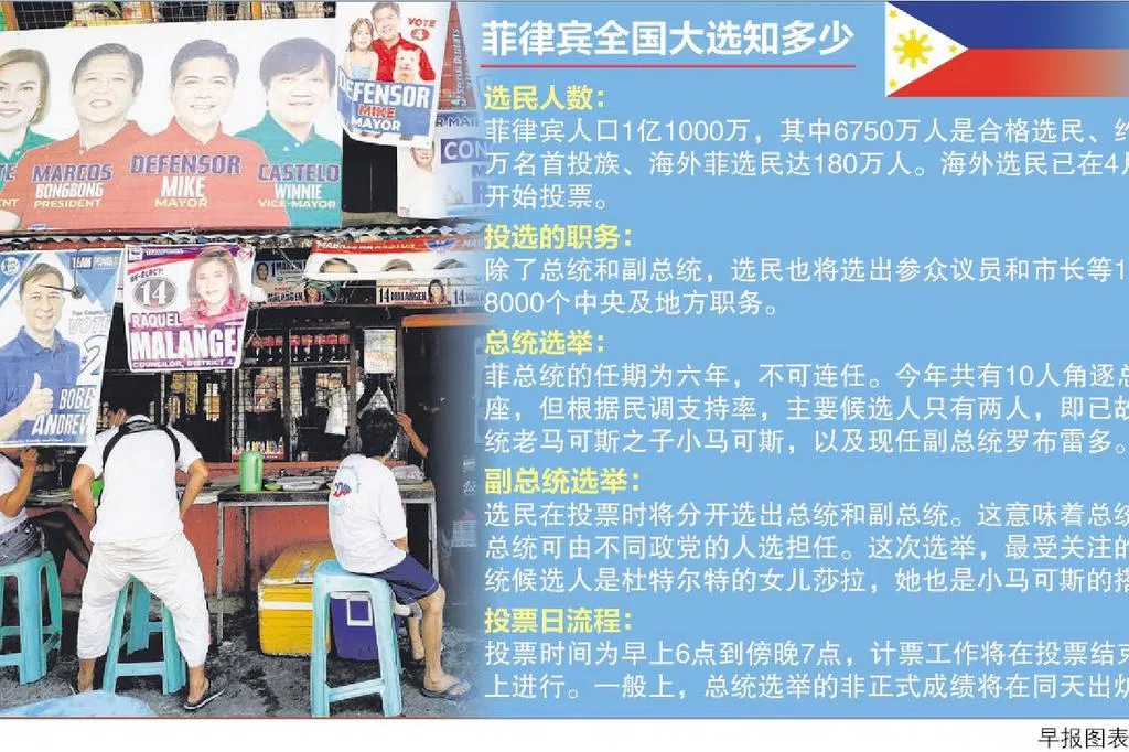 (马尼拉综合电)菲律宾今天(5月9日)将投选新一任总统。热门候选人小马可斯上周六的造势大会吸引百万人出席,选情备受看好。不过,部分选民却对马可斯家族势力的回归十分抗拒,分析认为,这是历次选举中菲律宾选民最撕裂的一次。
