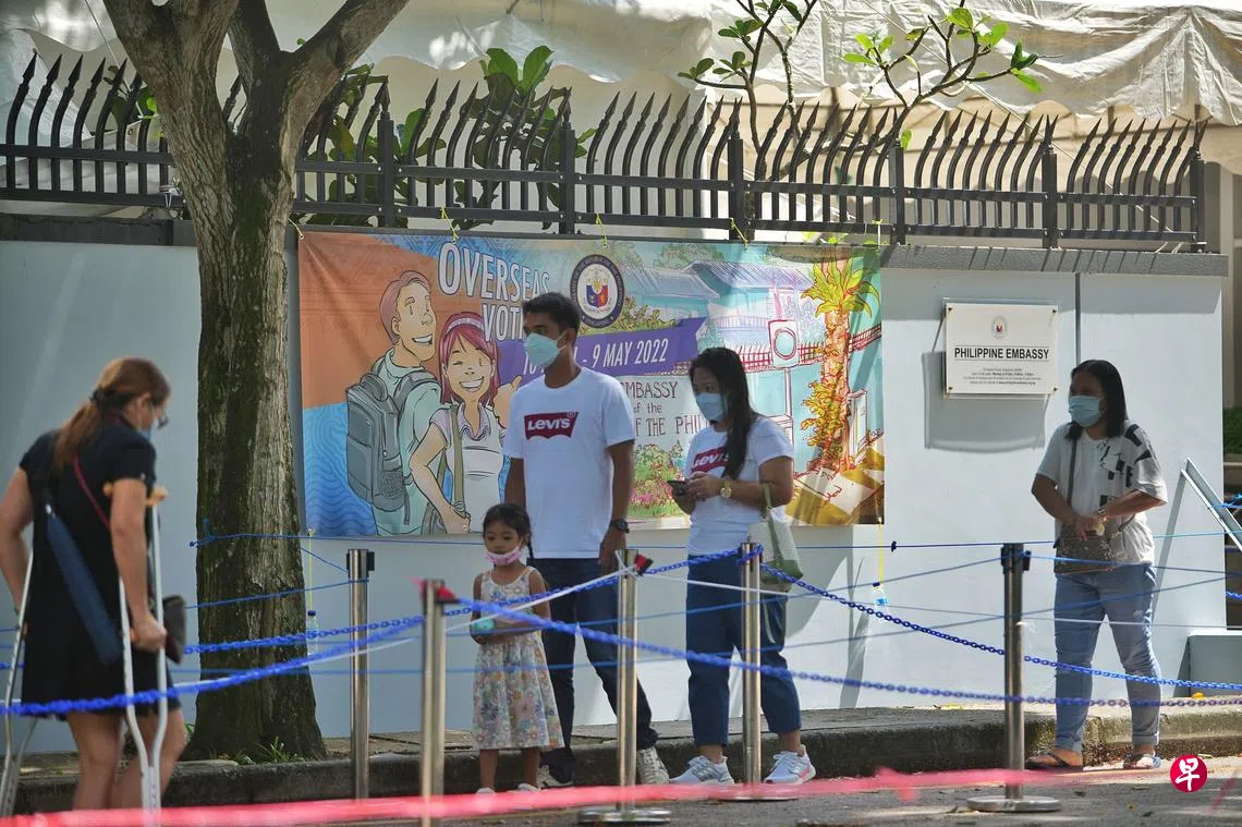 不少旅居新加坡的菲律宾选民,昨天到菲律宾驻新加坡大使馆为所支持的总统候选人,投下神圣的一票。