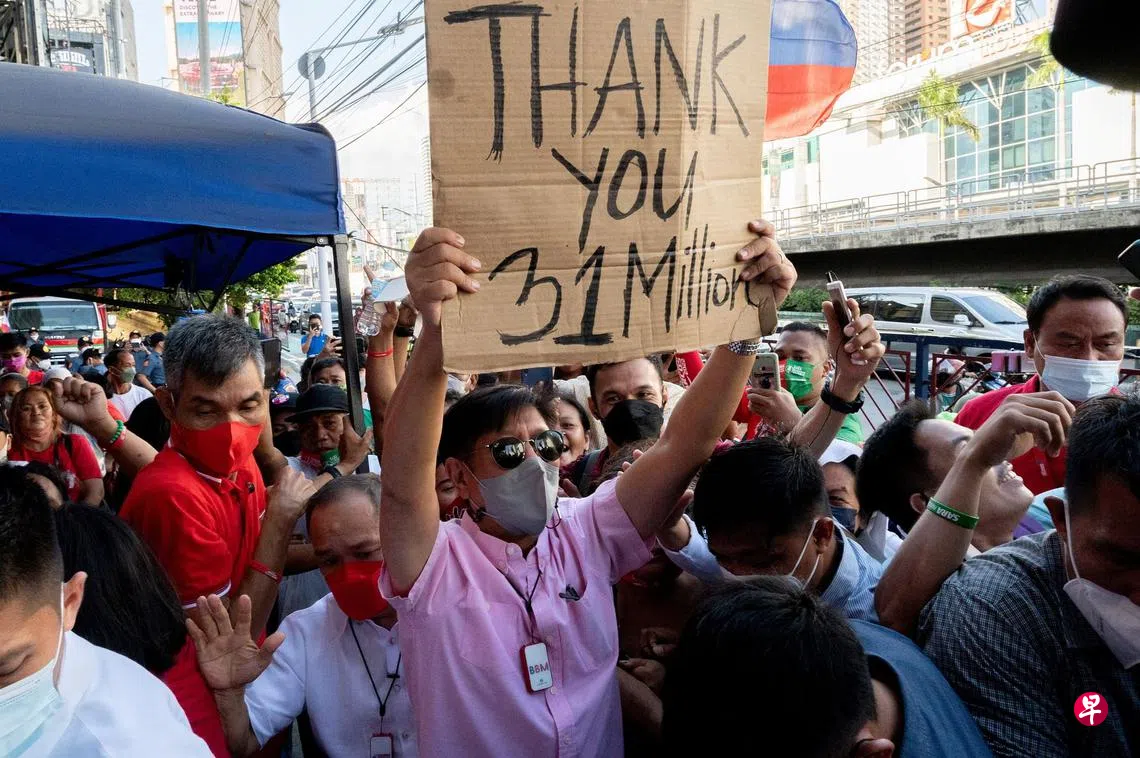 小马可斯争取到原任总统杜特尔特的女儿莎拉作为副总统竞选搭档,两大政治世家联手,气势如虹。