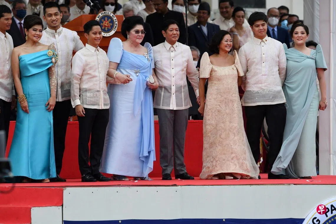 小马可斯昨天(6月30日)中午在马尼拉国家博物馆前宣誓就职。他的夫人露易丝、三个儿子和92岁的母亲伊美黛到场观礼。