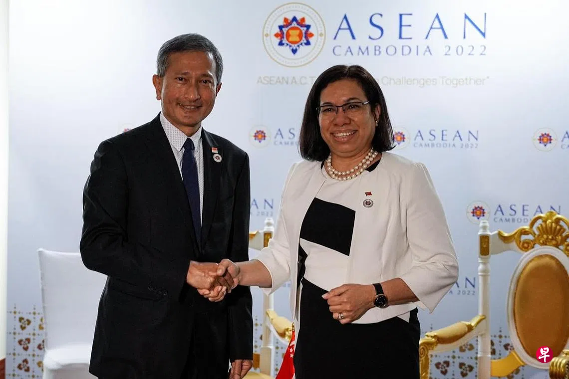 我国外交部长维文在亚细安外交部长会议场边会见东帝汶外交和合作部长马尼奥。今年是新加坡和东帝汶建交20周年,维文说:“我们与东帝汶有着牢固的关系,我们将继续加强这个关系。”