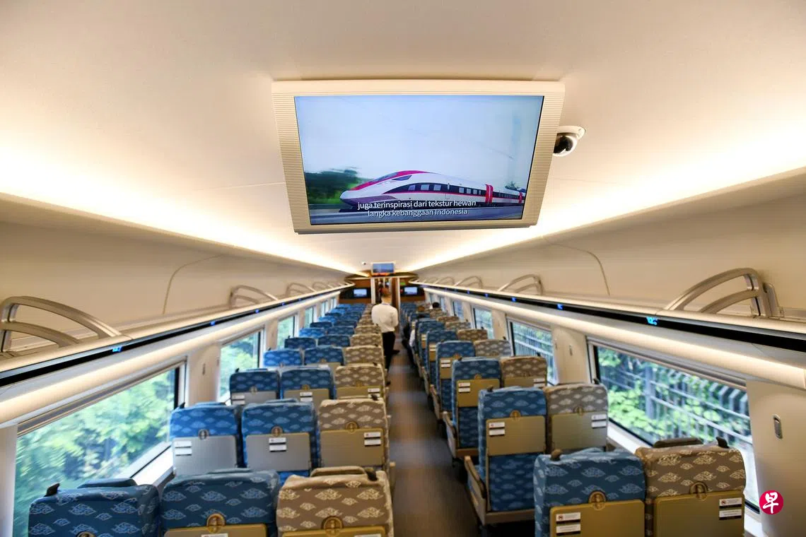 在2016年动工以来经历多次延误后,连接印度尼西亚首都雅加达和第四大城市万隆的雅万高铁今年7月开始铺轨,印尼正力争它能在11月的二十国集团(G20)期间试运行,并在2023年6月正式运营。雅万高铁全长142.3公里,时速350公里,让雅加达到万隆的出行时间将由现在的三个多小时缩短至40分钟。图为采用中国复兴号标准量身定制的雅万高铁列车8月5日在中国山东省青岛正式下线拍摄的车厢内部。(新华社)