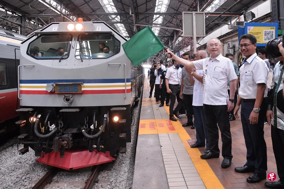 马国交通部长魏家祥星期四在吉隆坡火车站为亚细安特快列车试跑计划主持挥旗礼,声明说,试跑计划是为了测试各项功能,为10月正式运作做好准备。