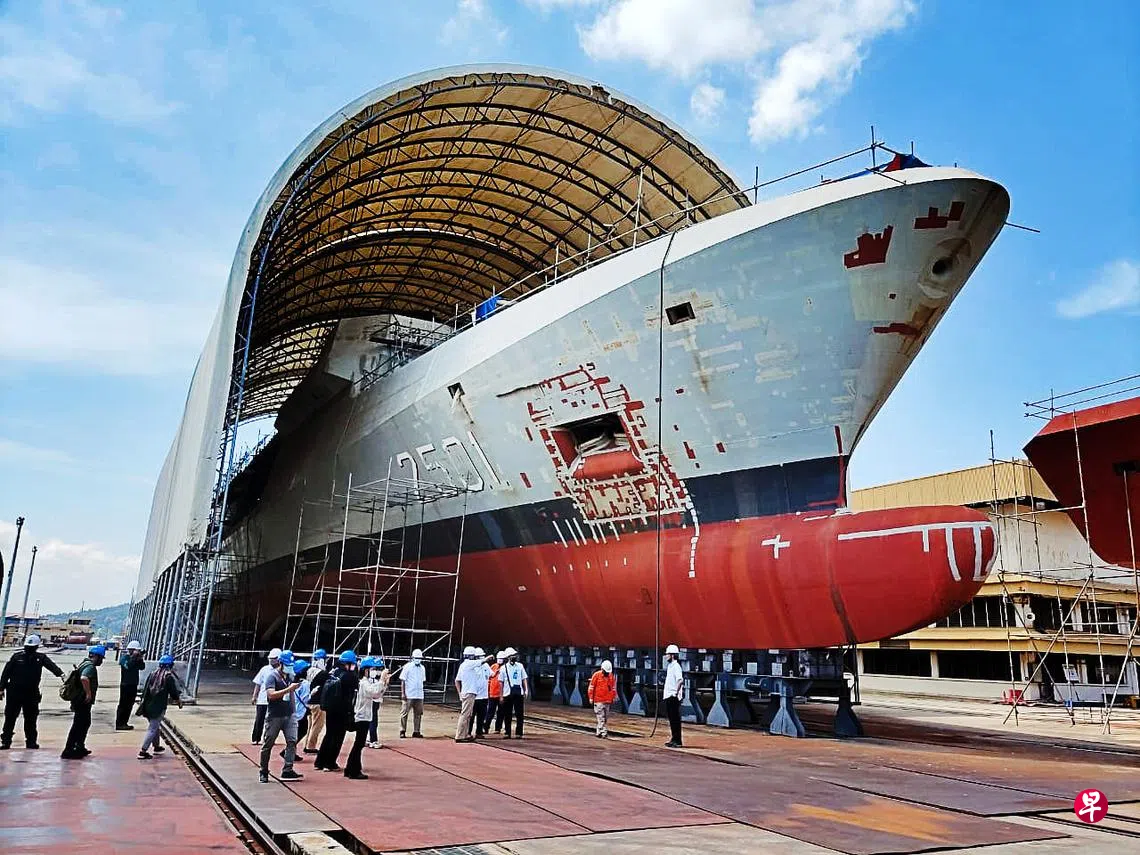 (红土坎综合讯)马来西亚濒海战斗舰采购案引起广泛关注,国防部特别邀请媒体到霹雳州红土坎的海军造船厂实地参观,以见证六艘濒海战斗舰“确实存在”,其中第一艘的建造工程已完成60%。