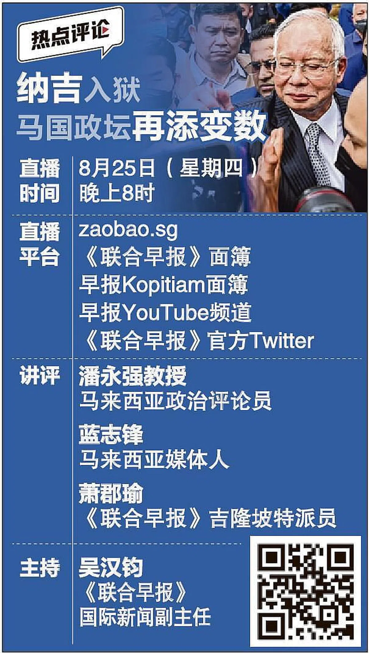 此外,巫统星期一(8月22日)召开全国区部主席与最高理事紧急会议后,星期六(8月27日)将再次召集所有区部主席出席巫统主席阿末扎希主持的汇报会。有消息指这次会议的重点是讨论纳吉入狱事件。