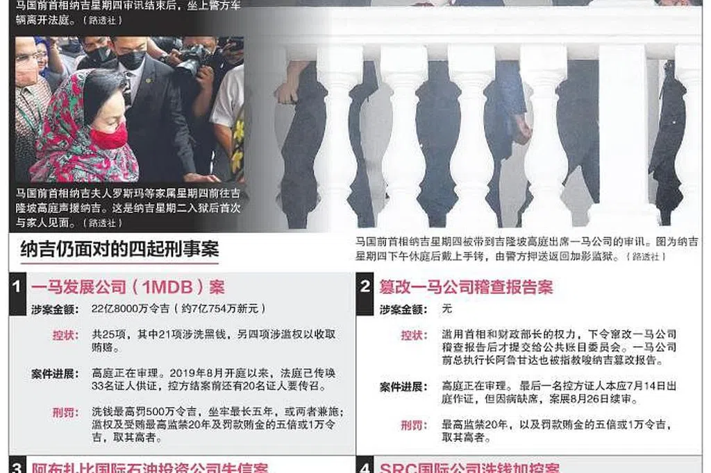 目前,纳吉还有四起案件在高庭审理或等待审理。