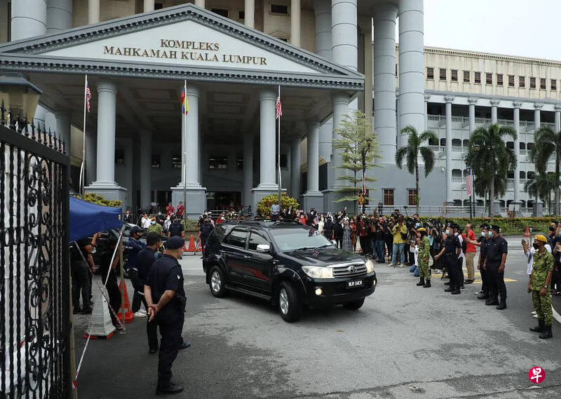马来西亚前首相纳吉因SRC公司案入狱两天后,星期四因涉及挪用一马公司22亿8000万令吉(约7亿新元)款项案件被押往吉隆坡高庭受审。