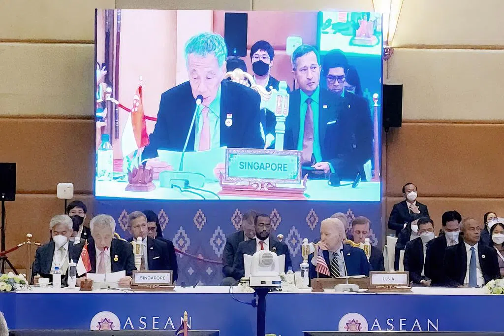 有17个国家参与的东亚峰会于金边时间星期天早上约10时30分(新加坡时间约11时30分),在中国总理李克强入席后召开。拜登当时尚未抵达会场,美国的位子因此空置。
