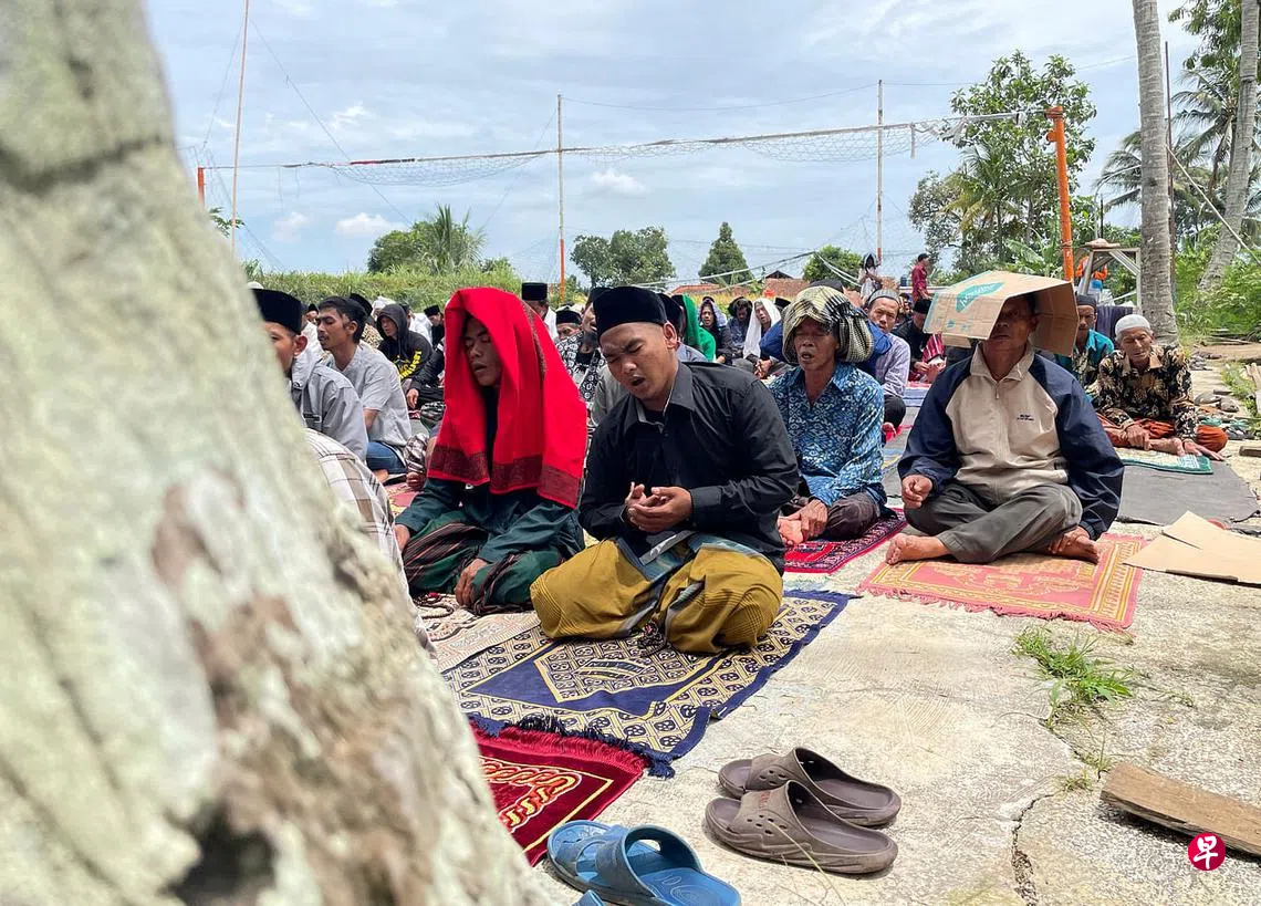 (展玉综合电)印度尼西亚西爪哇省发生地震后四天,当地居民仍然心有余悸,星期五的祈祷地点选在烈日下的户外地点举行。