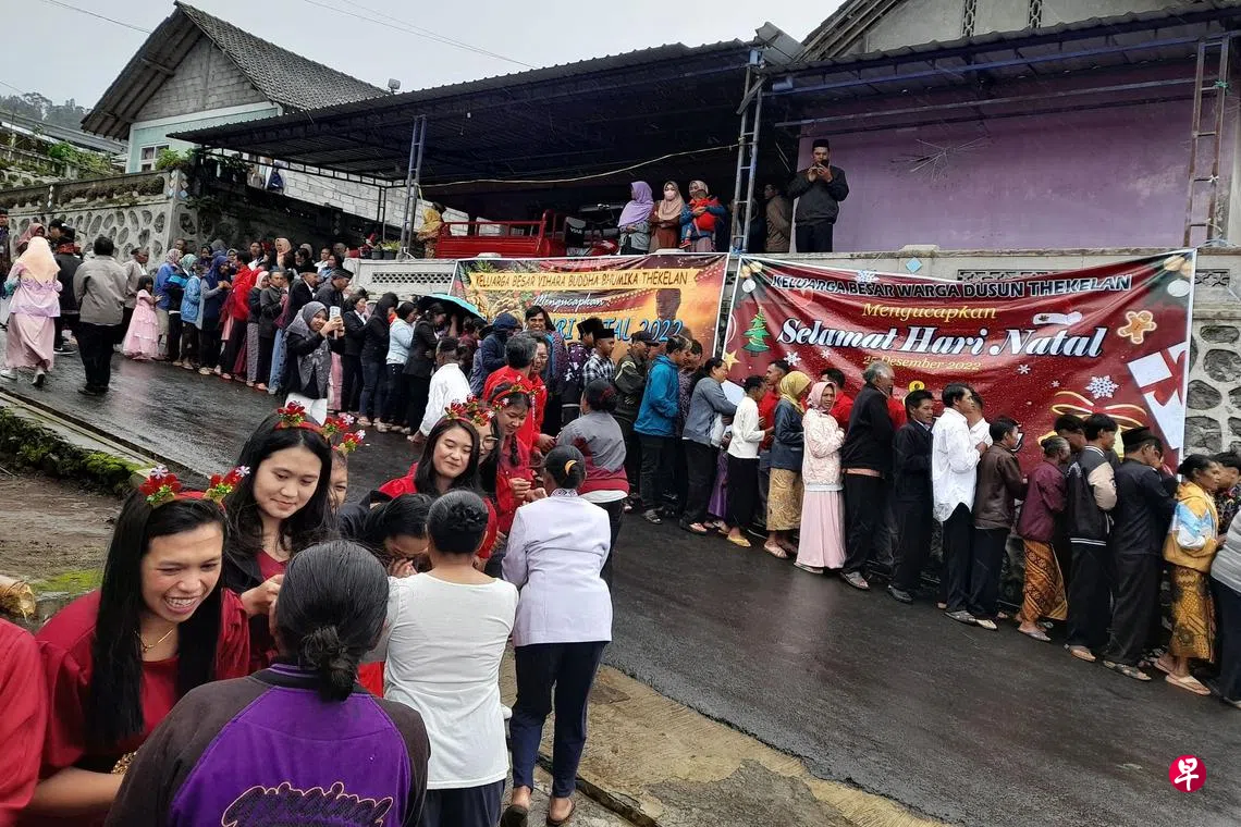 今年圣诞节,在印度尼西亚中爪哇省三宝垄的巴图尔村,基督徒村民列队接受非基督徒邻居致意。今年,印尼的基督徒终于可以恢复到冠病疫情暴发前那样过节,例如上教堂、家庭聚会、出门度假等。过去两年,印尼政府限制教堂只能让50%的信徒参加礼拜,今年允许教堂的庆祝活动恢复到疫情前的水平。总统佐科圣诞节早上访问西爪哇省茂物一家教堂时说:“我可以看到这里的人非常高兴地迎接今年的圣诞节。”(法新社)