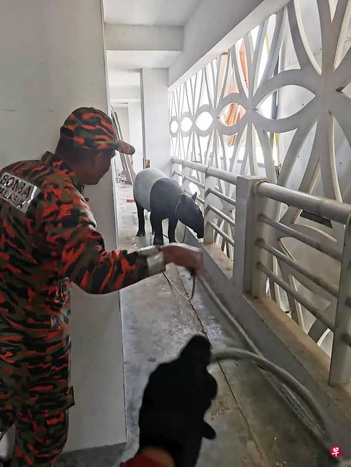 甲州中央县消拯局星期天(1月1日)早上9时许接获民众投报,指甲市一家酒店的五楼处发现一只马来貘。消拯局随即派出八人到场,花了约五个小时才捕获马来貘,并交给野生动物保护及国家公园局处理。