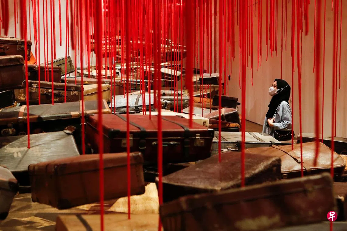 日本艺术家盐田千春的个展“颤动的灵魂”首次来到东南亚展出,吸引众多印度尼西亚艺术爱好者到雅加达现代和当代艺术博物馆(Museum MACAN)参观。盐田千春从个人与集体的经历和情感中汲取养分,带领参观者体验她对死亡和存在的探寻,这个过程往往和她标志性的网状艺术装置一样复杂。她收集鞋子、钥匙、床、椅子和衣服等日常物品,并将它们缠绕在巨大的抽象网格之中,以此重新定义大众对于记忆和意识的认知。盐田千春生于日本大阪,现居德国柏林,作品过去多在欧美和日本展出。