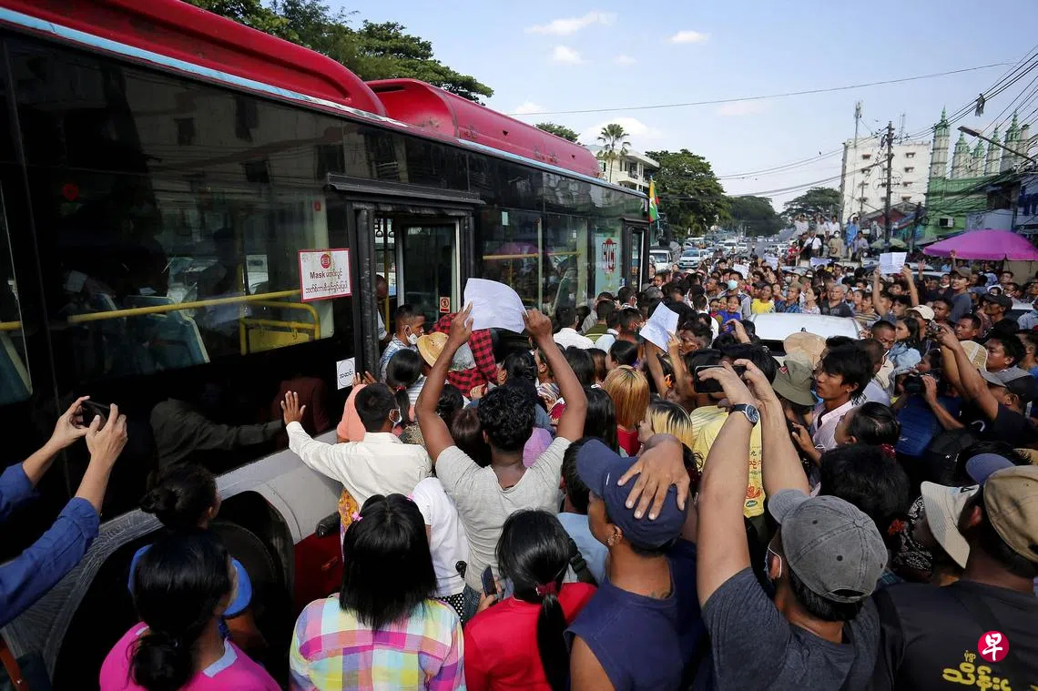 据缅甸媒体报道,获得释放的还有一些学生领袖、活跃分子及记者。图为大批囚犯家属星期三一早就在仰光的永盛监狱外等候和获释家人团聚。