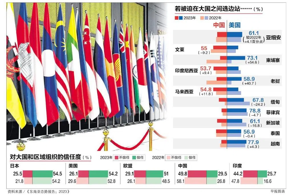 《东南亚态势报告:2023》调查结果显示,大部分受访者认为台海冲突会破坏区域经济稳定、亚细安会被迫选边站,或导致亚细安减少和中国大陆或台湾的经济合作。只有不到一成的受访者认为,亚细安会因企业向东南亚转移而受益,持这个观点的受访者大多来自文莱。