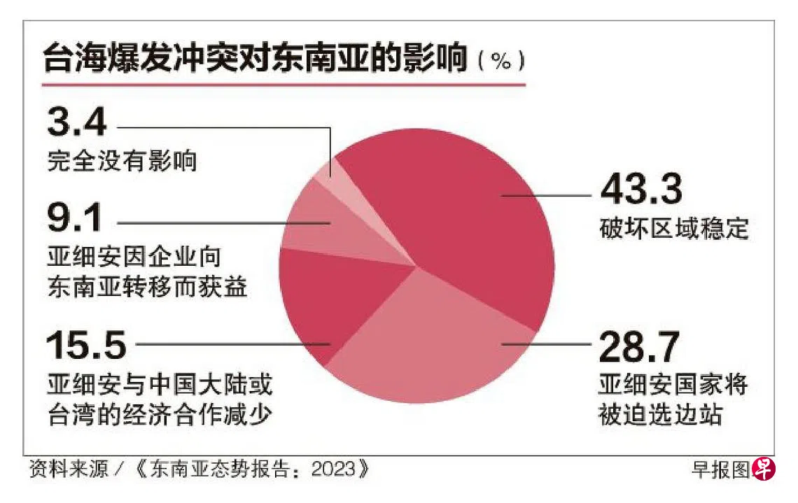 东南亚国家对台海局势高度警惕,超过八成的受访者相信台海冲突会给东南亚带来负面影响,包括破坏区域稳定和经济合作。