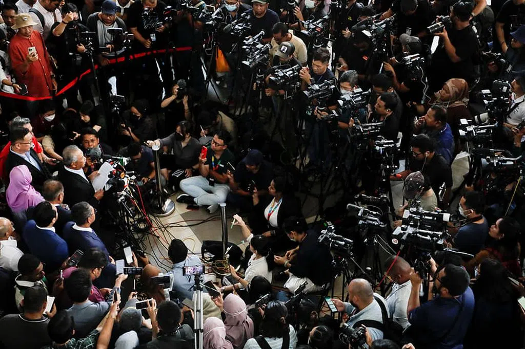 大批身穿白衣的国盟支持者一早就到场声援慕尤丁,他们手持“停止暴政”大字报,高呼提控慕尤丁不公平。数十家媒体机构派出整百名记者到来采访。