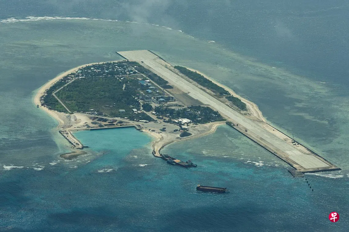 (马尼拉综合电)菲律宾海岸警卫队星期四(3月9日)用飞机载着媒体记者到南中国海俯瞰主权有争议的岛礁,下方的中国海警船发出警告,要飞机“立即离开”。