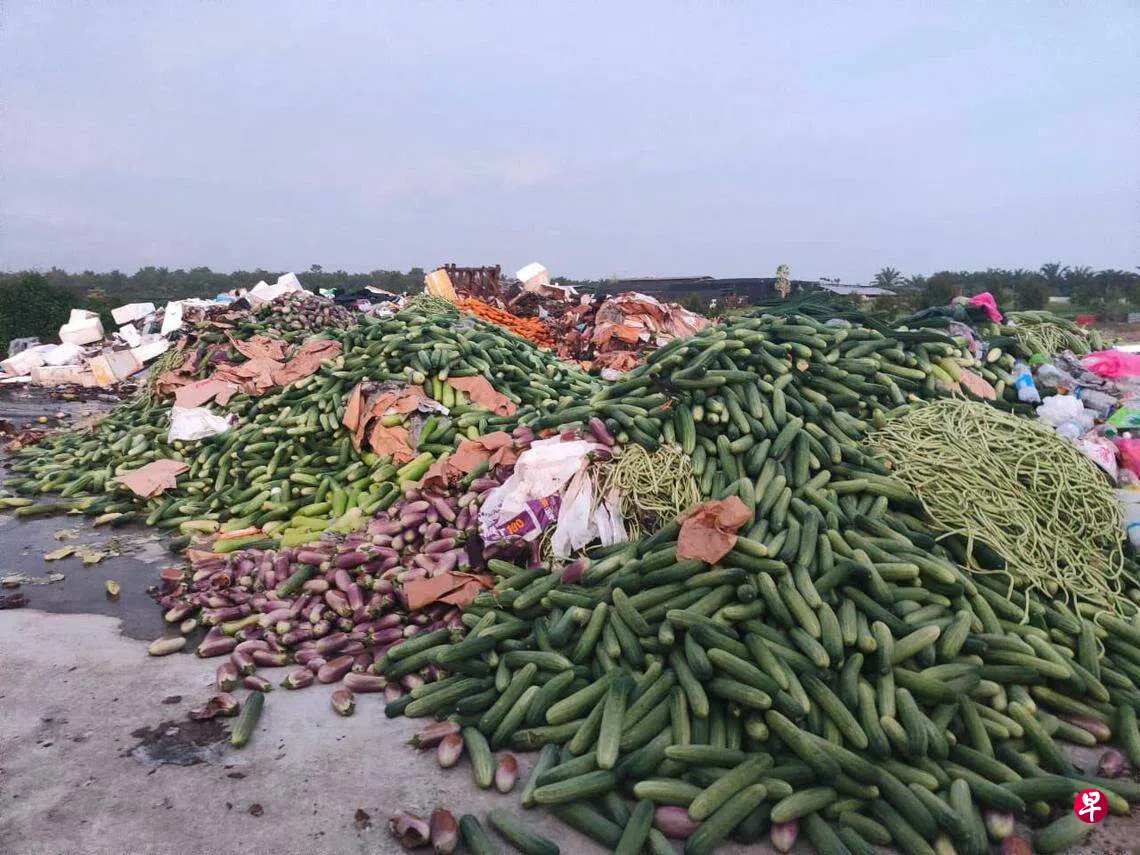 网民Lee Tinchoy星期一(4月24日)在脸书发布多张菜农大量丢弃茄子与黄瓜等蔬菜的照片而引起议论。
