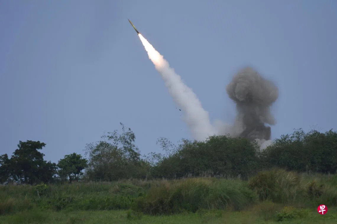 星期三进行的海上实弹演练使用了海马斯(HIMARS)高机动性多管火箭系统,类似于俄罗斯在乌克兰战争中部署的火箭系统。在击沉一艘逼近菲律宾海岸的象征敌舰后,炮兵部队还沿着草地排成一列,向离岸10公里的浮鼓发射火箭弹。