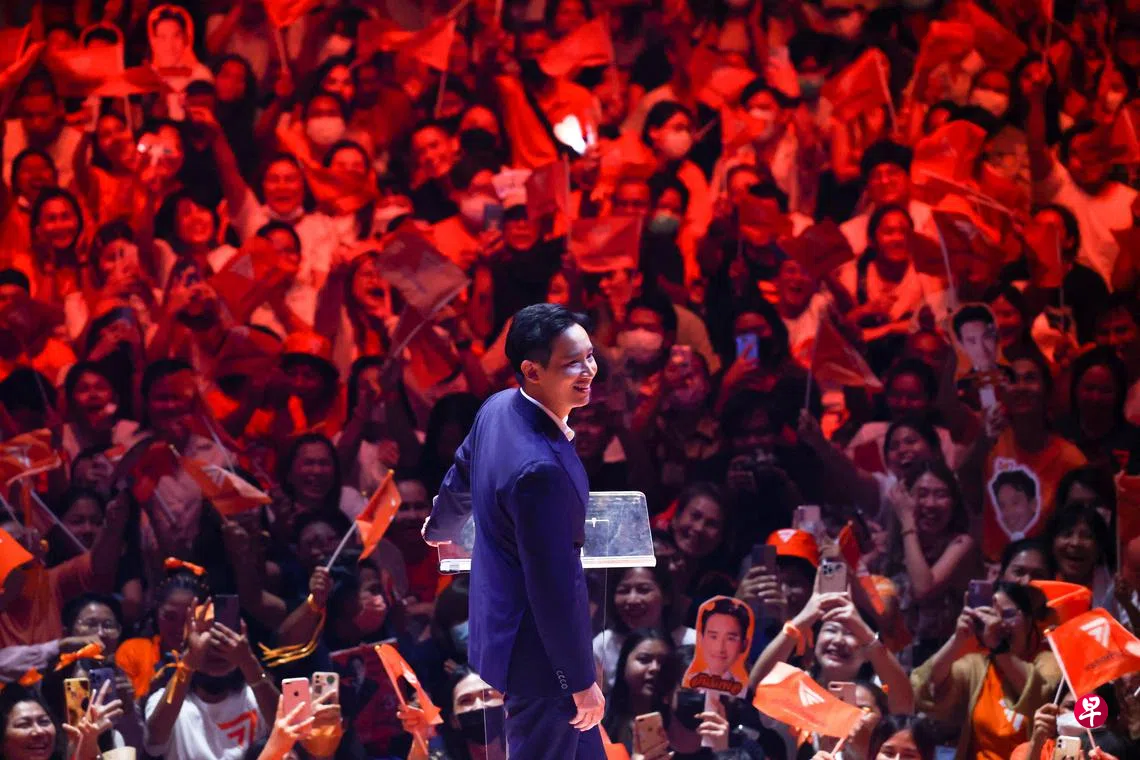 受到年轻选民欢迎、支持率近来持续上升的前进党也在曼谷拉票。党魁披塔通过扩音器说:“请给年轻一代治理国家的机会,我们会照顾好年长一代。”