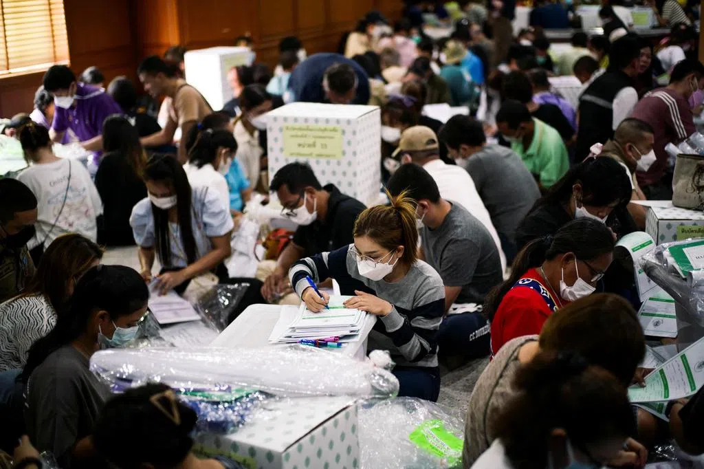泰国星期天举行2014年政变以来的第二次全国大选,超过5200万合格选民选举新一届政府。下议院有500个席位,包括400个选区议席和100个政党议席,赢得过半数议席的政党可以组织政府。但要当选首相必须获得上下议院376议席的支持。