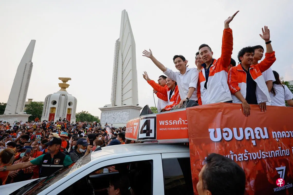 泰国星期天(5月14日)大选刮起强大反风,自由民主派的前进党和为泰党横扫国会下议院过半数议席,前进党党魁披塔已向为泰党等五个政党发出邀请组织联合政府。不过,泰国政治观察员认为,前进党能否顺利组建联合政府,以及披塔能否获得国会上下两院的支持出任首相,仍是未知数。