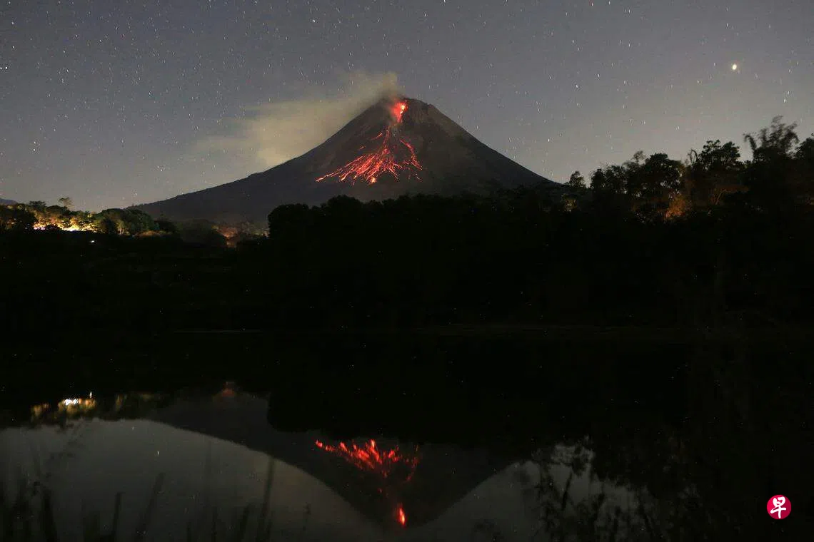 默拉皮火山喷发,浓烟和火山灰覆盖火山口附近至少八个村庄。 (法新社)