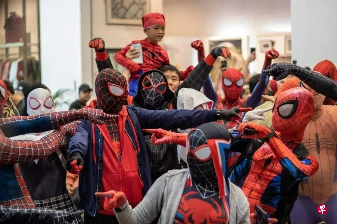 配合电影《蜘蛛侠:穿越新宇宙》本周在马来西亚上映,685名公众星期六(6月3日)装扮成“蜘蛛侠”到雪兰莪巴生武吉丁宜的永旺购物中心出席活动。