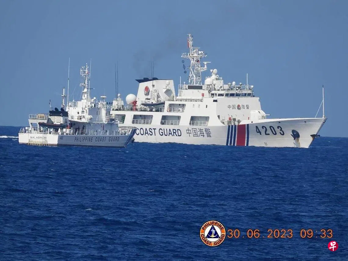 菲海岸警卫队发言人塔里耶拉星期三(7月5日)发推文说,两艘菲海警船6月30日护送船只前往阿云津礁(Second Thomas Shoal,中国称仁爱礁)时,在进入阿云津礁12海里范围后,两艘船体明显更大的中国海警船持续尾随、骚扰和阻挠。